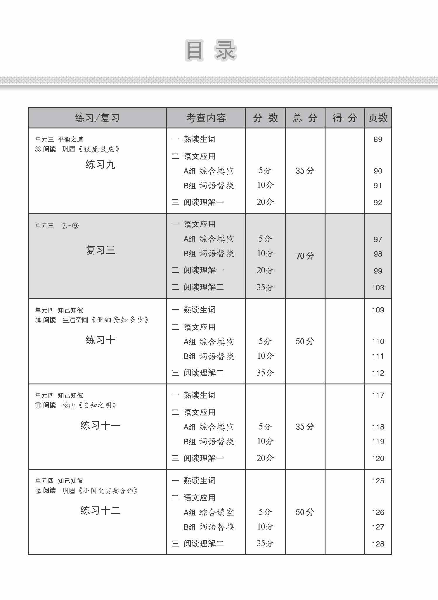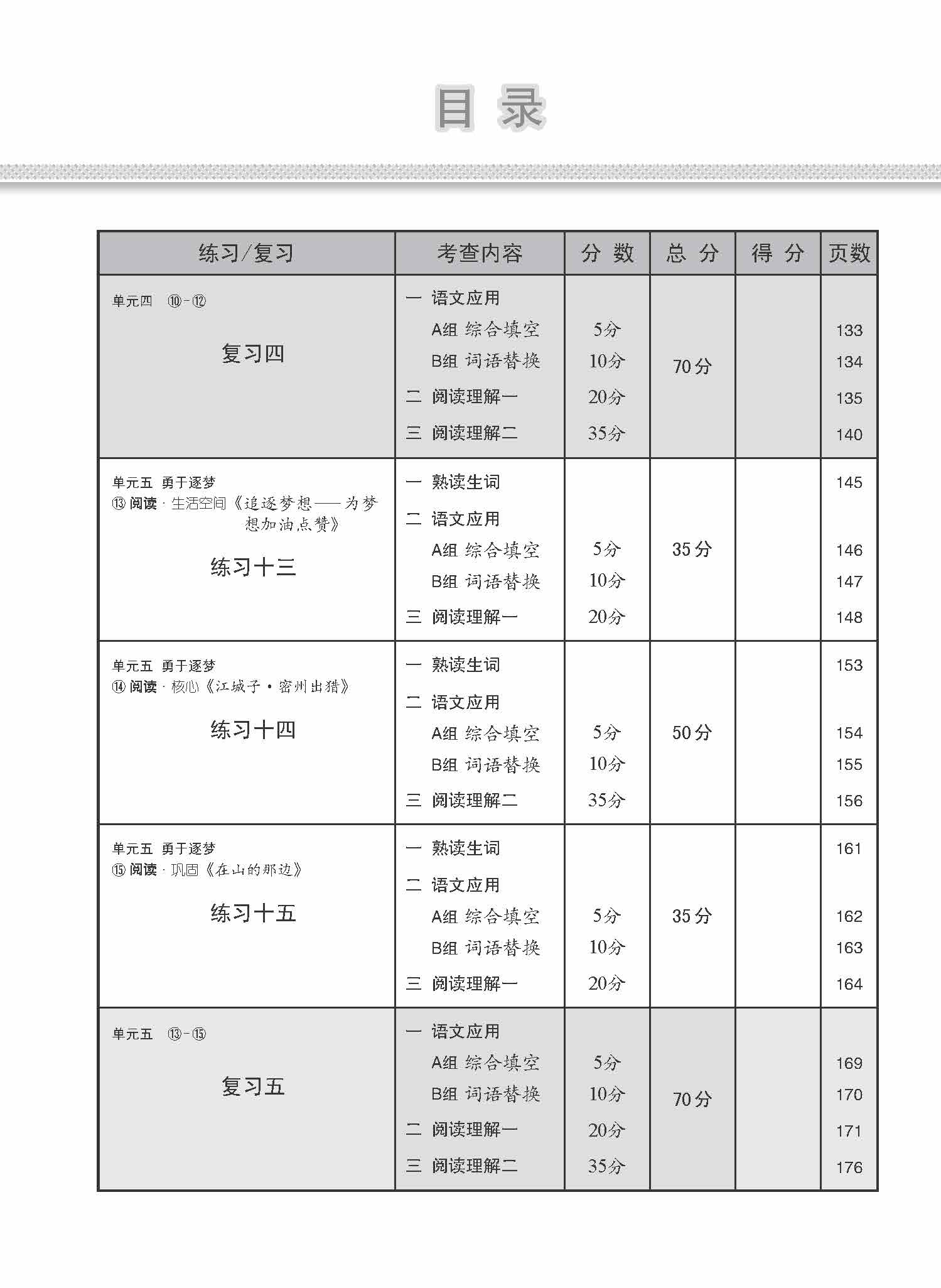 - 本练习册所选的篇章,内容贴近学生的生活,所设题目难易适当。答案附于书后,学生完成练习后可对照参考。