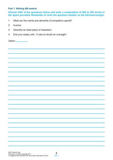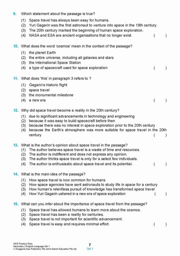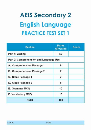 AEIS Practice Tests ENGLISH – Secondary 2 (13 to 15+ Years)