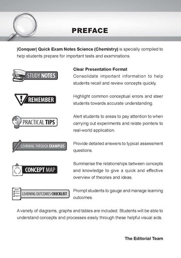 Conquer QUICK EXAM NOTES SCIENCE (CHEMISTRY) is specially compiled to help students prepare for important tests and examinations.