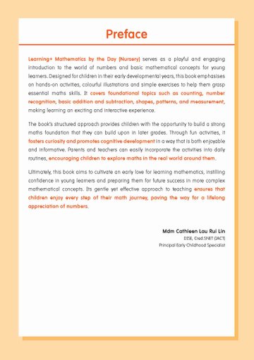 Ultimately, this book aims to cultivate an early love for learning mathematics, instilling confidence in young learners and preparing them for future success in more complex mathematical concepts. Its gentle yet effective approach to teaching ensures that children enjoy every step of their math journey, paving the way for a lifelong appreciation of numbers.