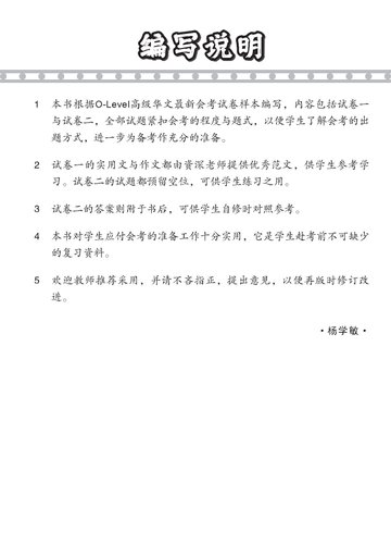 O-LEVEL 高级华文 试卷一 · 试卷二 是根据高级华文会考试卷最新试题样本编写而成,是专供参加高级华文会考的学生复习的实用资料。