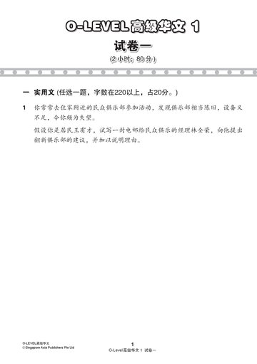 O-LEVEL 高级华文 试卷一 · 试卷二 / O-Level Higher Chinese Test Sets
