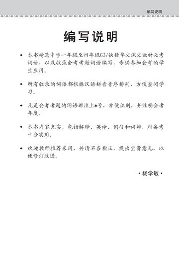 - 精心挑选中一至中四华文教材中的重点词语,并收录历年会考常考词汇,紧扣教学与考试要求,专为备考学生量身打造,有效提升语文应试能力。