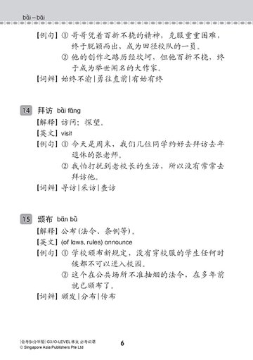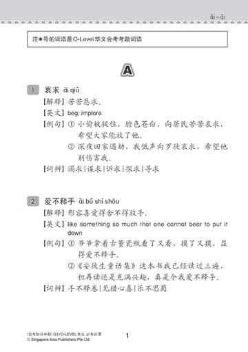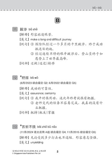 Examinable Vocabulary Guide Book For G3/O-Level Chinese carefully selects essential vocabulary from Secondary 1 to 4 G2/Express Chinese textbooks, along with commonly tested words from past O-Level exam papers—specially designed for students preparing for the O-Level Chinese examination.