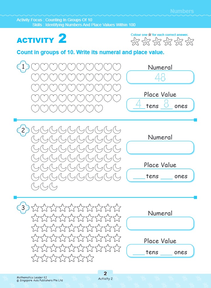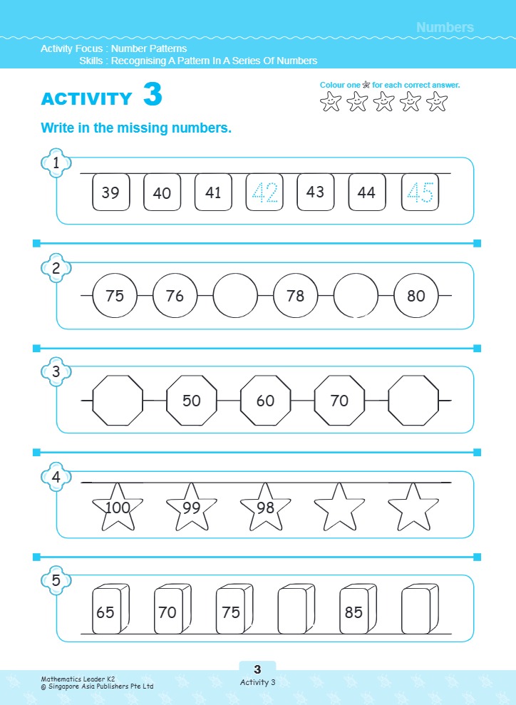 LITTLE LEADERS MATHEMATICS LEADER Kindergarten 2 is a pre-primary school series geared towards preparing kindergarten children for school work in Primary 1. This series completes a child’s preparation for primary school in English, grammar, vocabulary, writing, mathematics and Chinese.