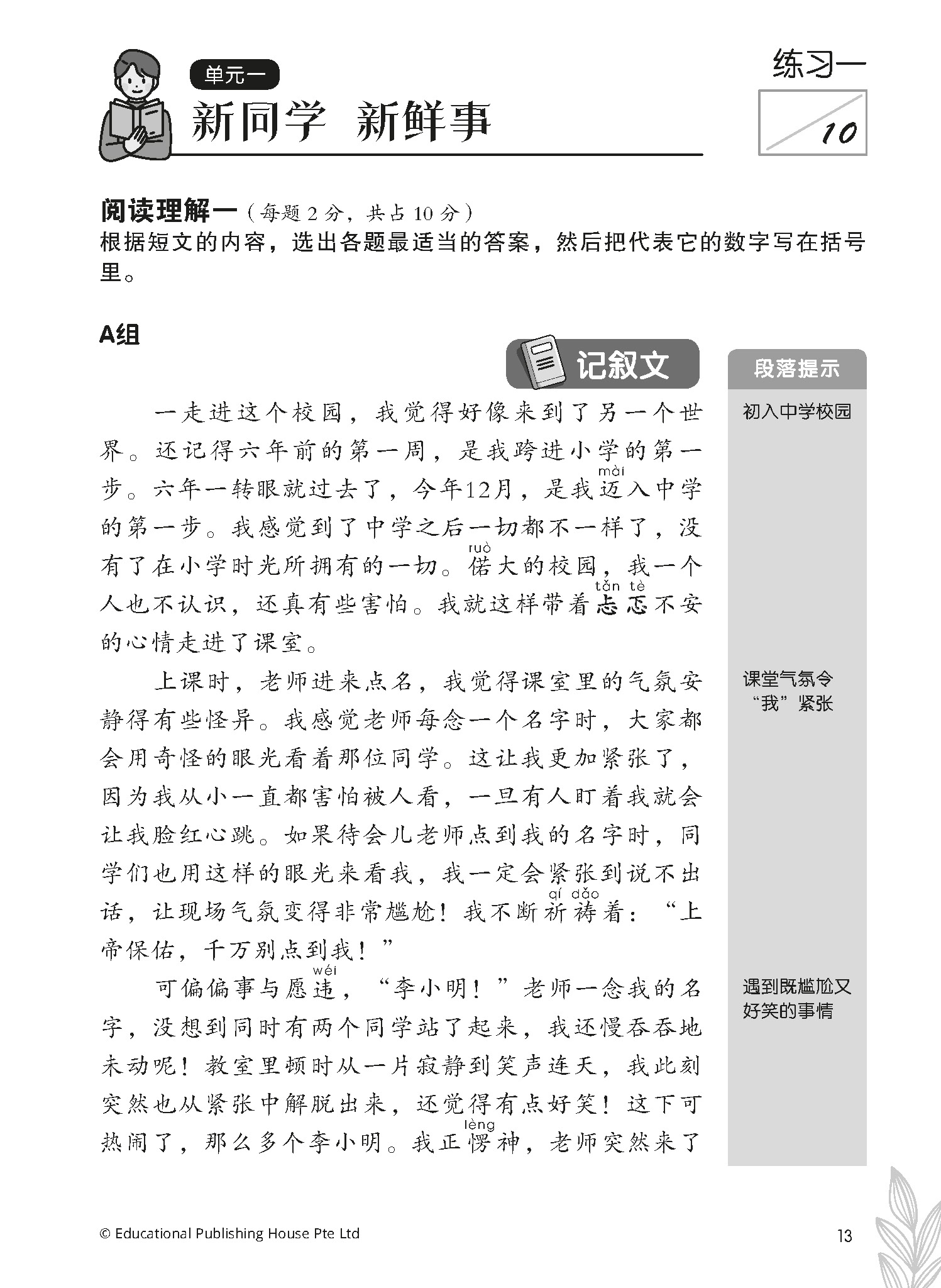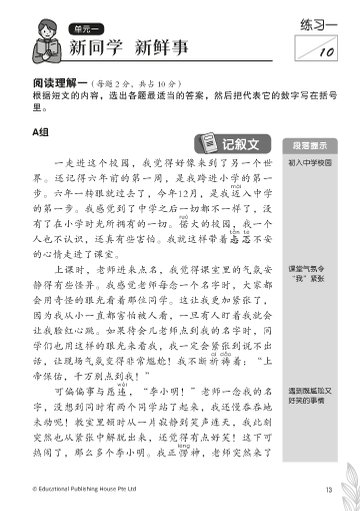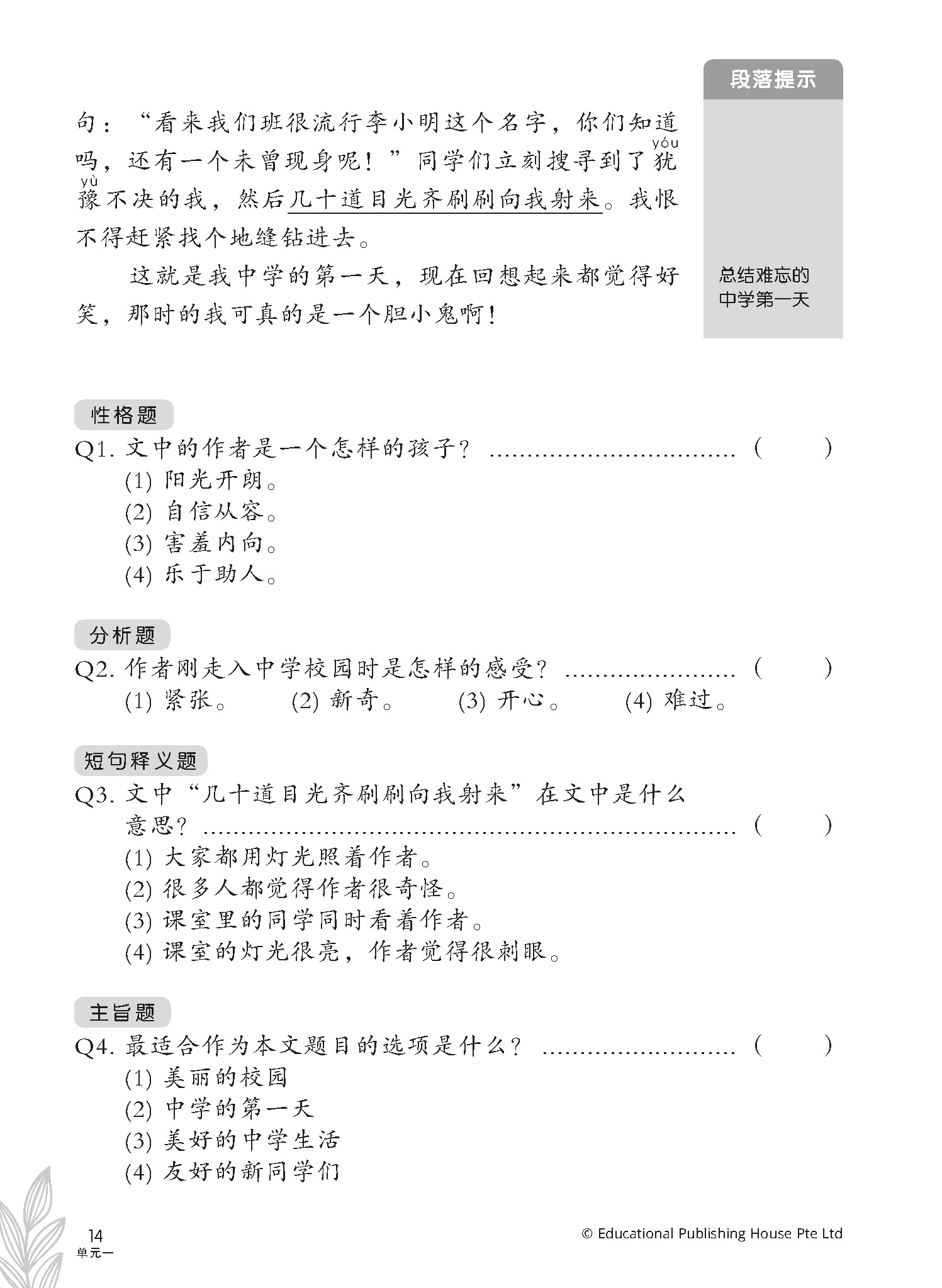 • 每篇文章附带段落提示,帮助学生更好地理解文章结构与内容。